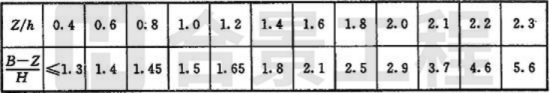 注:當Z/h>2.3時,建筑物的相關(guān)尺寸可不受限制。
